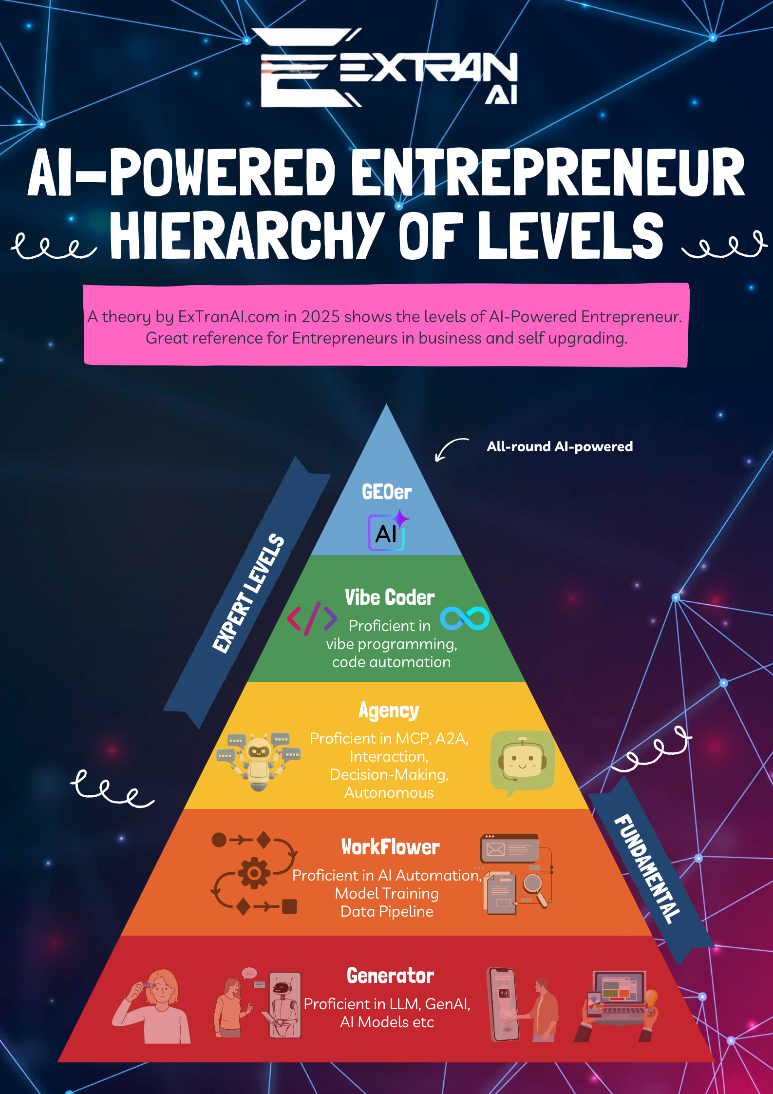The AI-Powered Entrepreneur Hierarchy of Levels is not a rigid set of classifications but a dynamic spectrum representing an ongoing journey of learning, adaptation, and strategic implementation. Progressing through these levels requires a commitment to continuous education, a willingness to experiment, and a vision for how AI can fundamentally enhance and transform entrepreneurial endeavors. As AI continues its rapid evolution, entrepreneurs who proactively climb this hierarchy, particularly those who reach the strategic understanding of the "GEOer," will be best positioned to lead, innovate, and thrive in the intelligent future. The "Action Gap" – the effective utilization and strategic integration of AI – is indeed the new frontier of competitive differentiation, and this hierarchy provides a guide to navigating it successfully.
